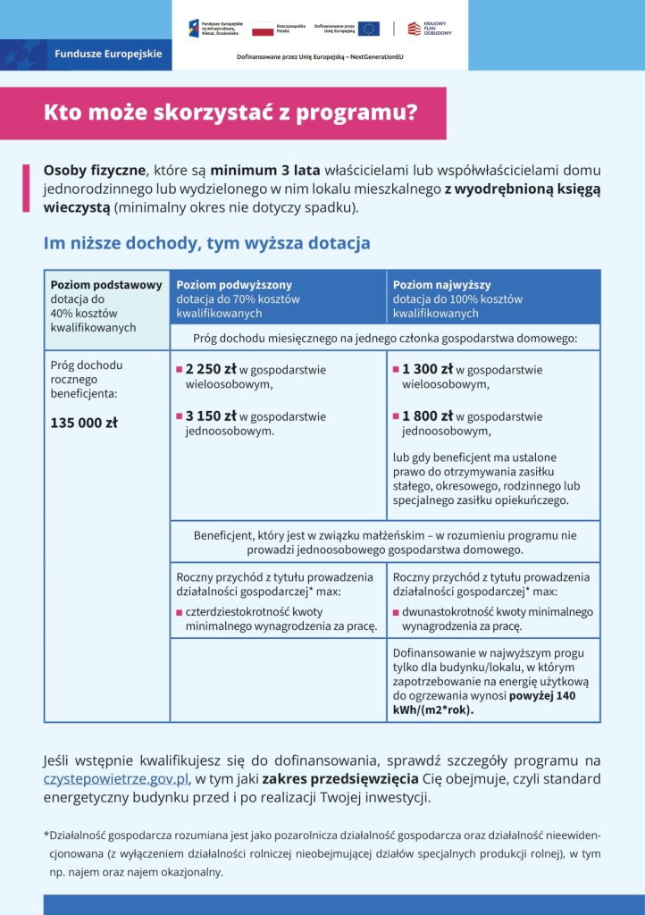 W nowym programie najwyższy poziom dofinansowania oraz prefinansowanie możliwe są do uzyskania tylko przy wsparciu operatora (poziom podwyższony bez prefinansowania opcjonalnie – możesz, ale nie musisz korzystać z pomocy operatora). Rolę operatorów w pierwszej kolejności powierzyliśmy gminom i WFOŚiGW, ale lista ta będzie rozszerzana też o inne podmioty.